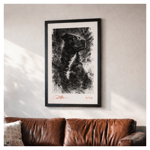 Each print is produced on 13 × 19 heavyweight white parchment, giving the artwork a rich texture and a strong gallery-quality presence.